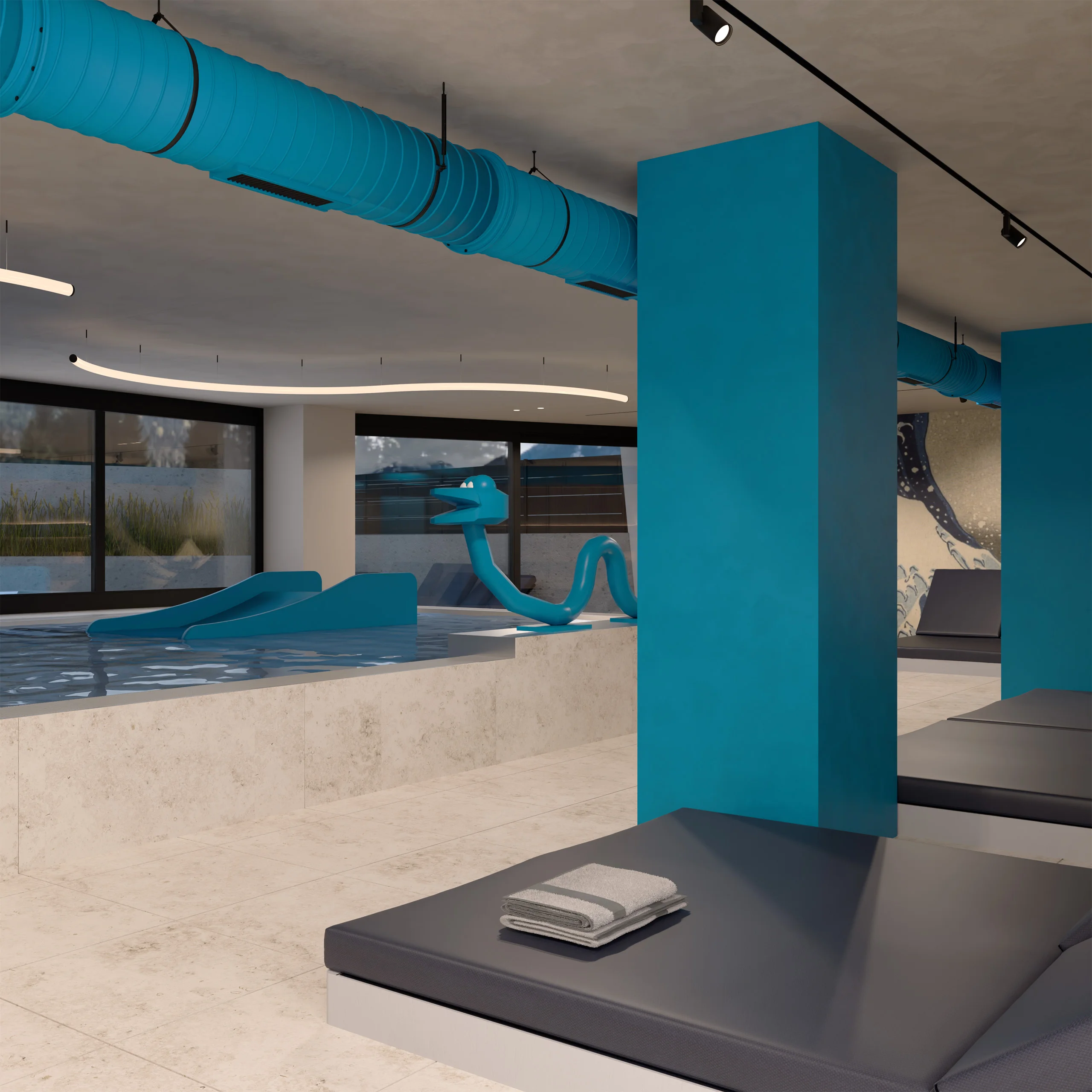 piscina interna e esterna, giochi, scivoli e sauna per famiglie